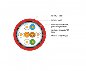 FIRETUF ohňovzdorný kábel Cat 5, SF/UTP, LSFROH, funkčný počas požiaru 180min pri 950°C, Eca