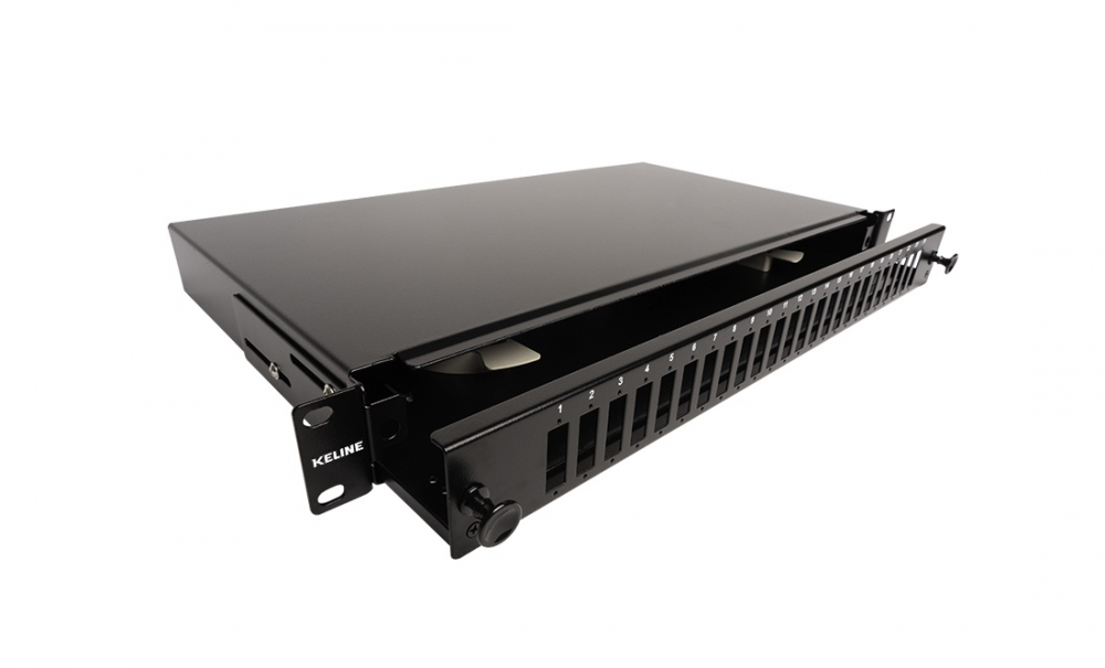 Keline optický patch panel pre 24 x ST-ST alebo FC-FC adaptérov, výsuvný s odnímateľným čelom